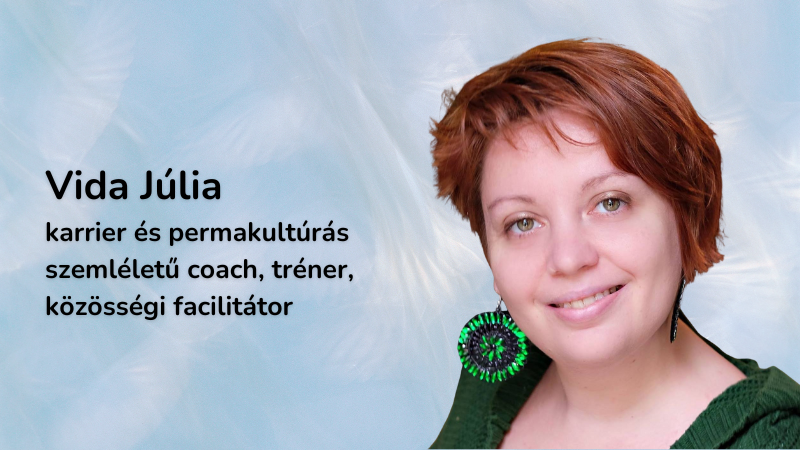 Vida Júlia vagyok – karrier coach, tréner, közösségi facilitátor és permakultúrás szemléletű coach. Abban segítem az embereket, hogy megtalálják az IKIGAI-ukat: azt a hivatást, amiben a személyes kiteljesedés és a világért való cselekvés találkozik a megélhetéssel. A permakultúrát 2017-ben Rakesh Rootsman Rak-tól tanultam és azóta integrálom az elveit, módszereit a coach munkámba. Alapító tagja vagyok a zuglói Zuniverzum ökoközösségnek.